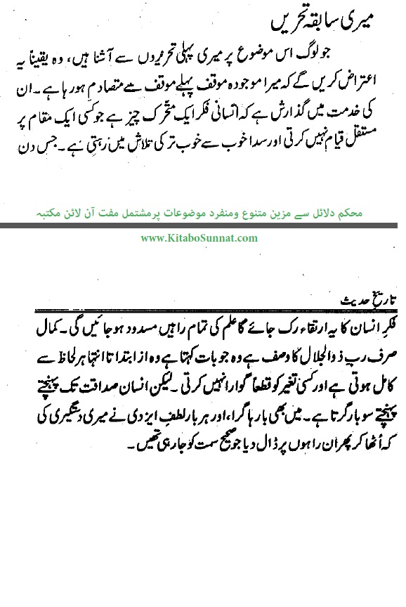 میں مسلسل چودہ برس تک حصول علم کے لئے مختلف علماء و صوفیہ کے ہاں رہا، دروس نظامی کی تکمیل کی۔ سینکڑوں واعظین کے وعظ سےنے۔ بیسیوں دینی کتابیں پڑھیں اور بالآخر مجھے یقین ہو گیا کہ اسلامی تعلیمات کا ماحصل یہ ہے''۔ (دو اسلام صفحہ ۱۵)