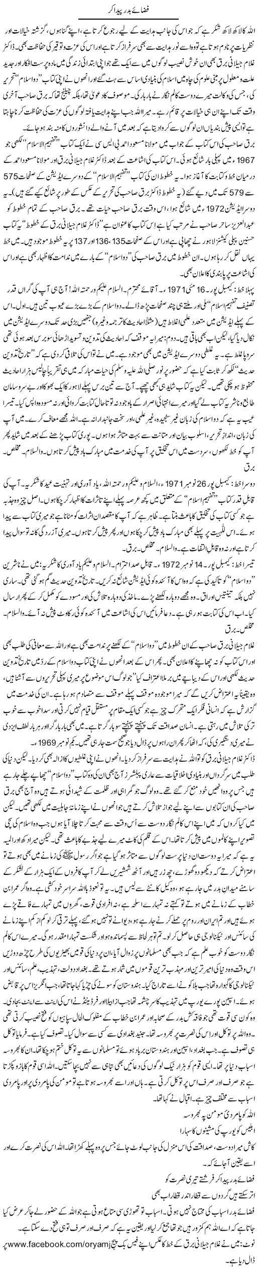 نوٹ: اوریا مقبول جان میرے دوست ہیں، یہ پاکستان کے پڑھے لکھے، ایماندار اور صاحب ذوق بیوروکریٹ ہیں، یہ وسیع المطالعہ بھی ہیں، انھوں نے دنیا بھی دیکھی اور یہ ٹیلی ویژن، اخبارات اور رسائل سے بھی وابستہ ہیں، میں ہمیشہ سے ان کا مداح ہوں، اوریا صاحب نے ڈاکٹر غلام جیلانی برق کی کتاب ’’دو اسلام‘‘ پر میری اصلاح فرمائی، انھوں نے ’’تفہیم الاسلام،، کے تین خطوط کا حوالہ دیا، یہ خطوط ڈاکٹر برق نے مولانا مسعود احمد کو لکھے تھے۔