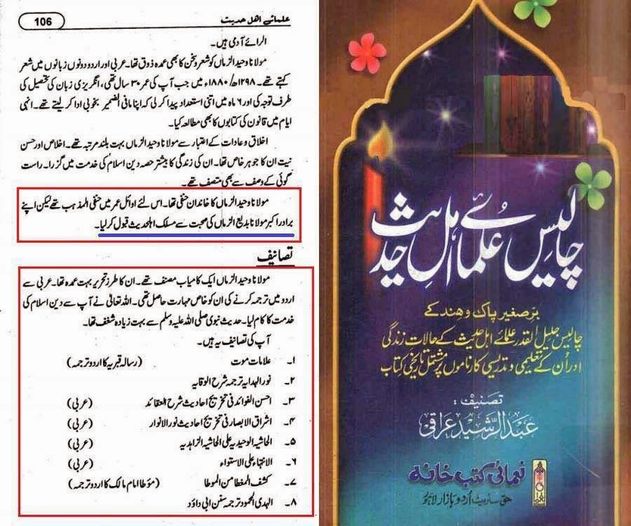 ’’علامہ وحید الزمان اہل علم کے نزدیک محتاج تعارف نہیں۔۔۔۔ان کی جماعت کے اکثر لوگ ان سے پوری طرح خوش نظر نہیں آتے۔۔۔۔مولانا وحید الزماں سے وہابیوں کی ناراضگی۔۔۔۔‘‘